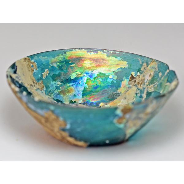 わくわく とんぼ玉 古代ローマングラス半透明エメラルドブルー虹色銀化碗 口径約11 8cm 21 とんぼ玉 骨董 21 Ab ビーズ アクセサリー道具 材料 Ab ビーイストヤフー店